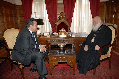Τον Μακαριώτατο Αρχιεπίσκοπο Αθηνών και Πάσης Ελλάδος κ.κ. Ιερώνυμο επισκέφθηκε ο Πρόεδρος του Κινήματος ΑΝΕΞΑΡΤΗΤΟΙ ΕΛΛΗΝΕΣ Πάνος Καμμένος συνοδευόμενος από τον Εκπρόσωπο του Κινήματος Τέρενς Κουίκ και τον Γραμματέα του Κινήματος Μιχάλη Γιαννάκη.